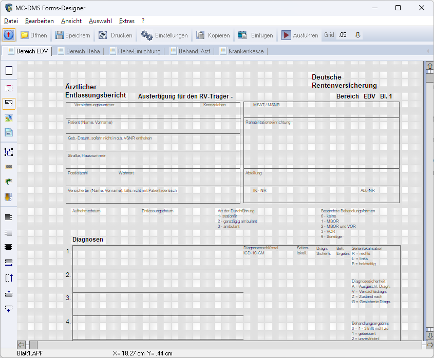 Der Formular-Designer ist das zentrale Werkzeug zur Erstellung und Bearbeitung von Formularen innerhalb des MCDMS-Systems.