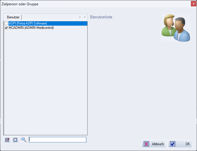 //Ruft die Standard-Benutzer- und Gruppenauswahl von MediControl auf und liefert einen oder mehrere Benutzer zurück.