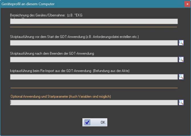 Definieren Sie hier das Skript, welches nach dem Beenden der GDT-Anwendung, beispielsweise CardioSoft, zum Befunden von EKGs gestartet werden soll.