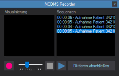Nach dem Klicken auf den Abschluss-Button werden alle Diktate zu einer einzigen Audiodatei zusammengeführt und in die Akte übertragen.