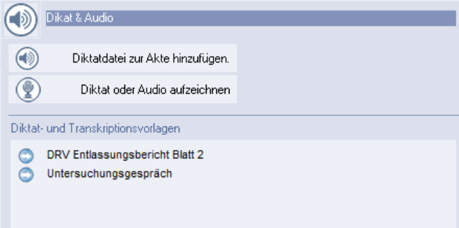 Klicken Sie auf das Audiosymbol in der Patientenakte und wählen Sie Diktat oder Audio aufzeichnen.
