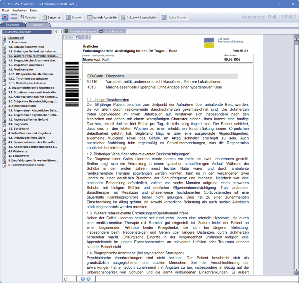 2. Verwaltetes Diktieren in Verbindung mit einem Dokumenten-Textprofil, z. B. DRV Ebericht Blatt 2, Kassenbrief, Entlassungsbericht etc.