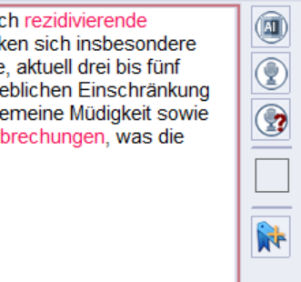 Wie bereits beschrieben können Sie im gesamten System-Umfeld ja frei diktieren. Ergänzend haben wir in den Modulen MCF-TEXT (Dokumente wie DRV-Bericht, Kassenbrief, etc.), Verlaufsdukumentation und Bausteinverwaltung zusätzliche Buttons implementiert die Sie dann direkt in der Anwendung nutzen können.
