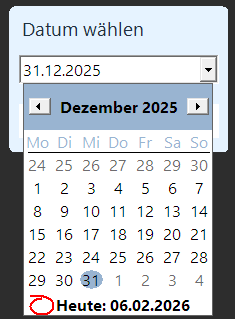 MYDATE=MCEXT.DATETIMEPICKER{Datum wählen,31.12.2025,01.01.2020,31.12.2030,true,true,12,#E6F3FF,#203040}