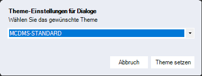 Viele Scriptfunktionen im MCDMS-Framework unterstützen ein zentrales Theme-System. Damit lassen sich Farben und Schriftgrößen für Dialoge und Oberflächenelemente einmal definieren und automatisch in allen unterstützten Funktionen verwenden.